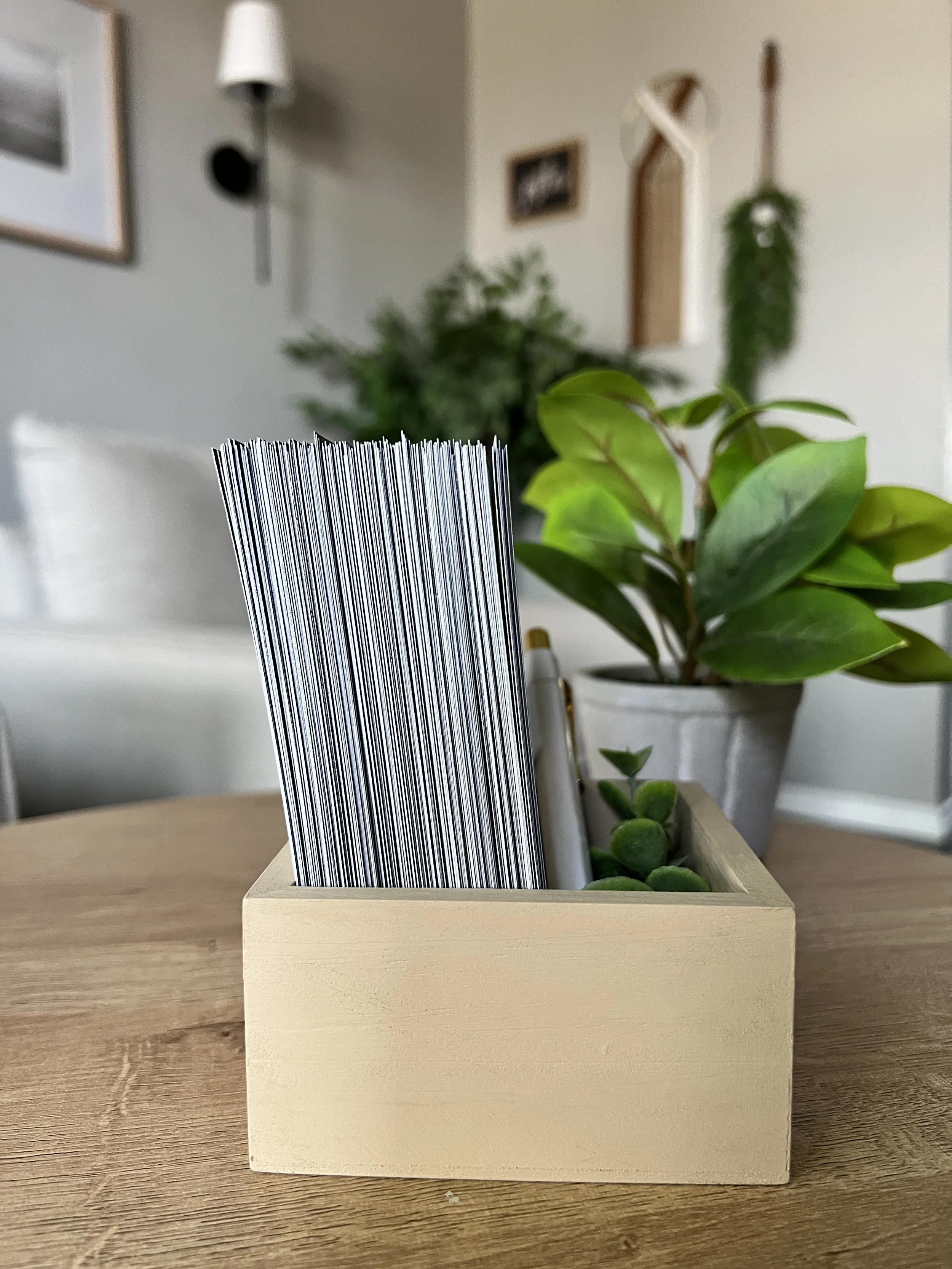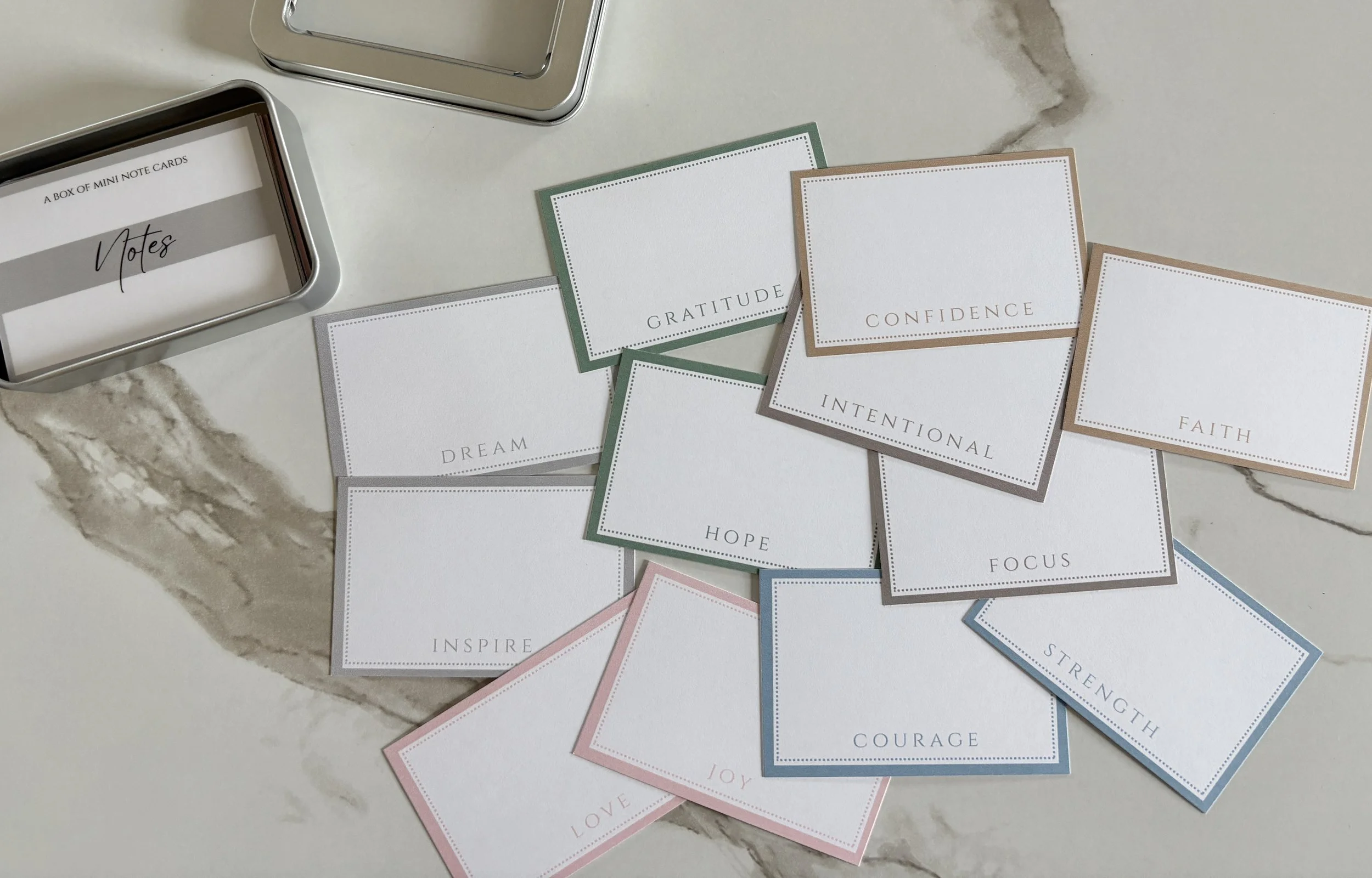 The Neutrals. Note cards in a wood box. 3.5x3.5.