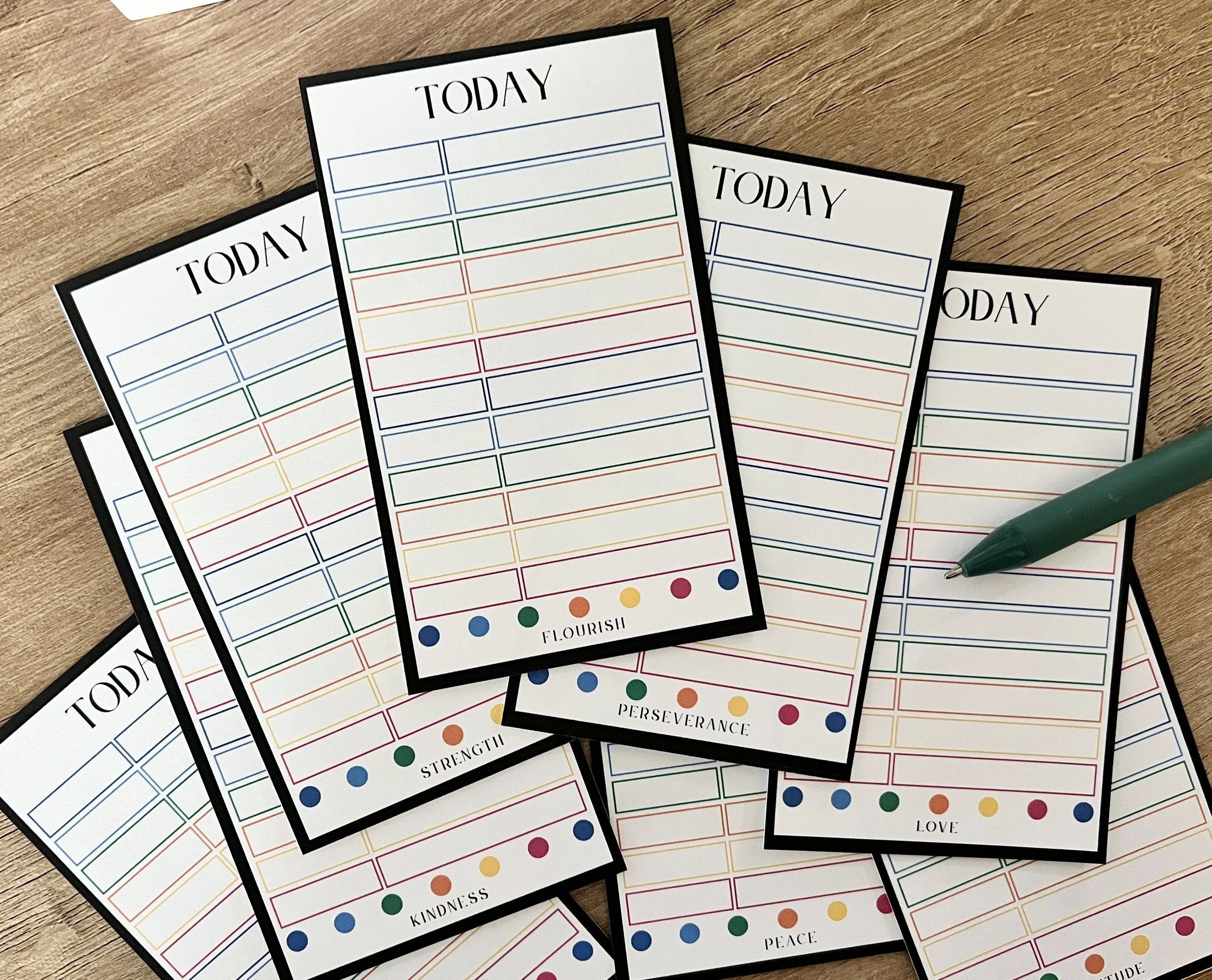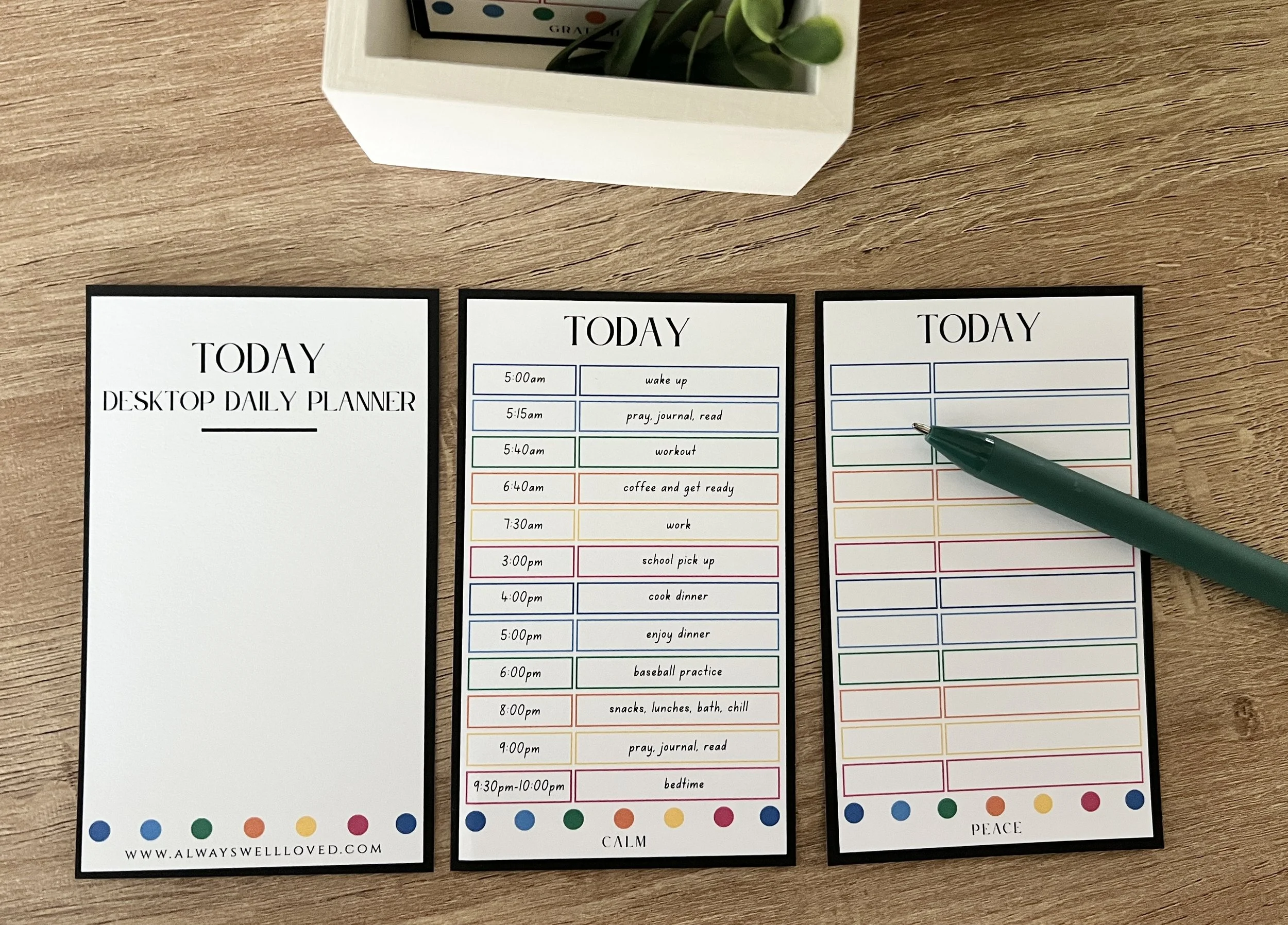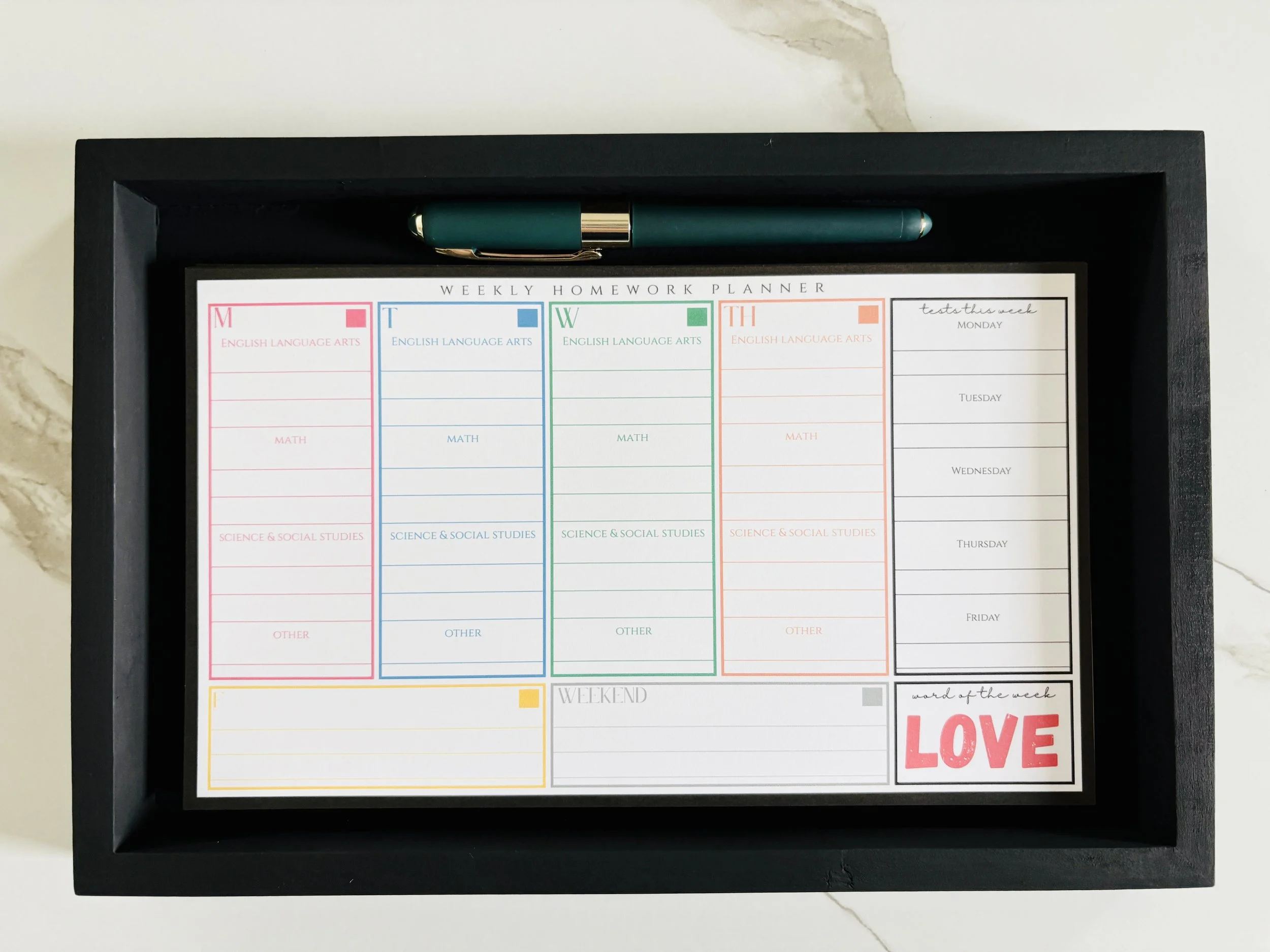 Pink Weekly Planner with Gratitude and Pink Desktop Tray.