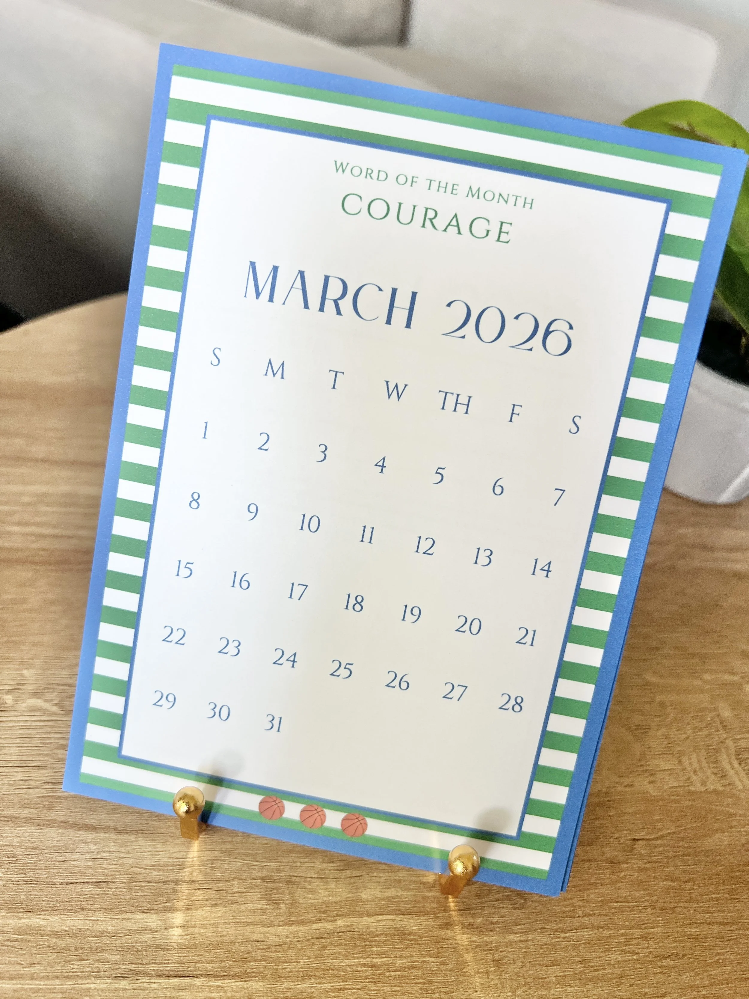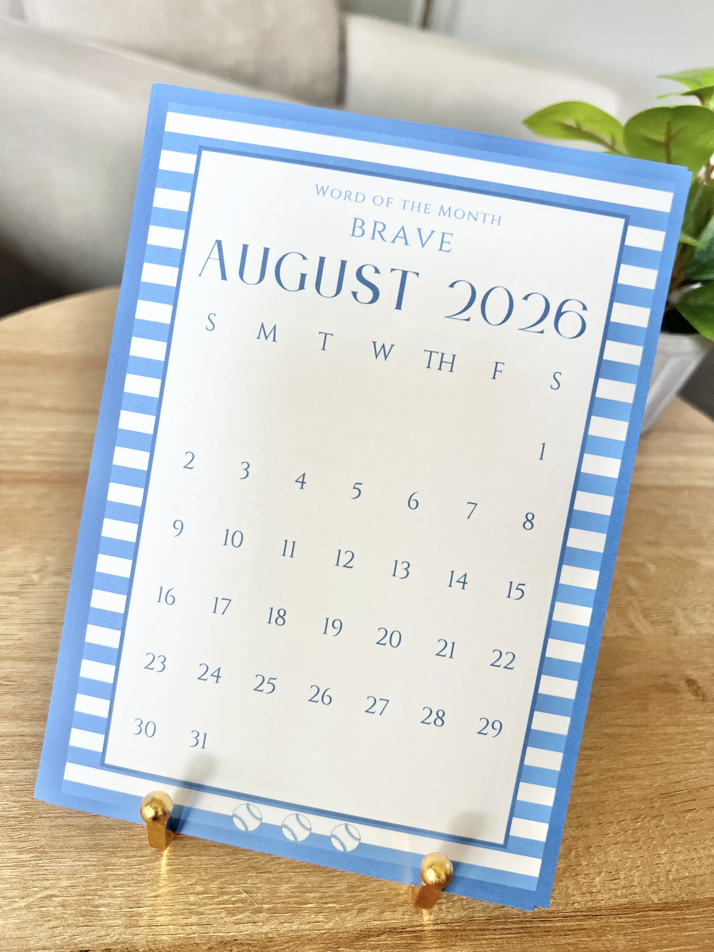 2026 Sporty Blue Kid Calendar. Get the rest of 2025 free!