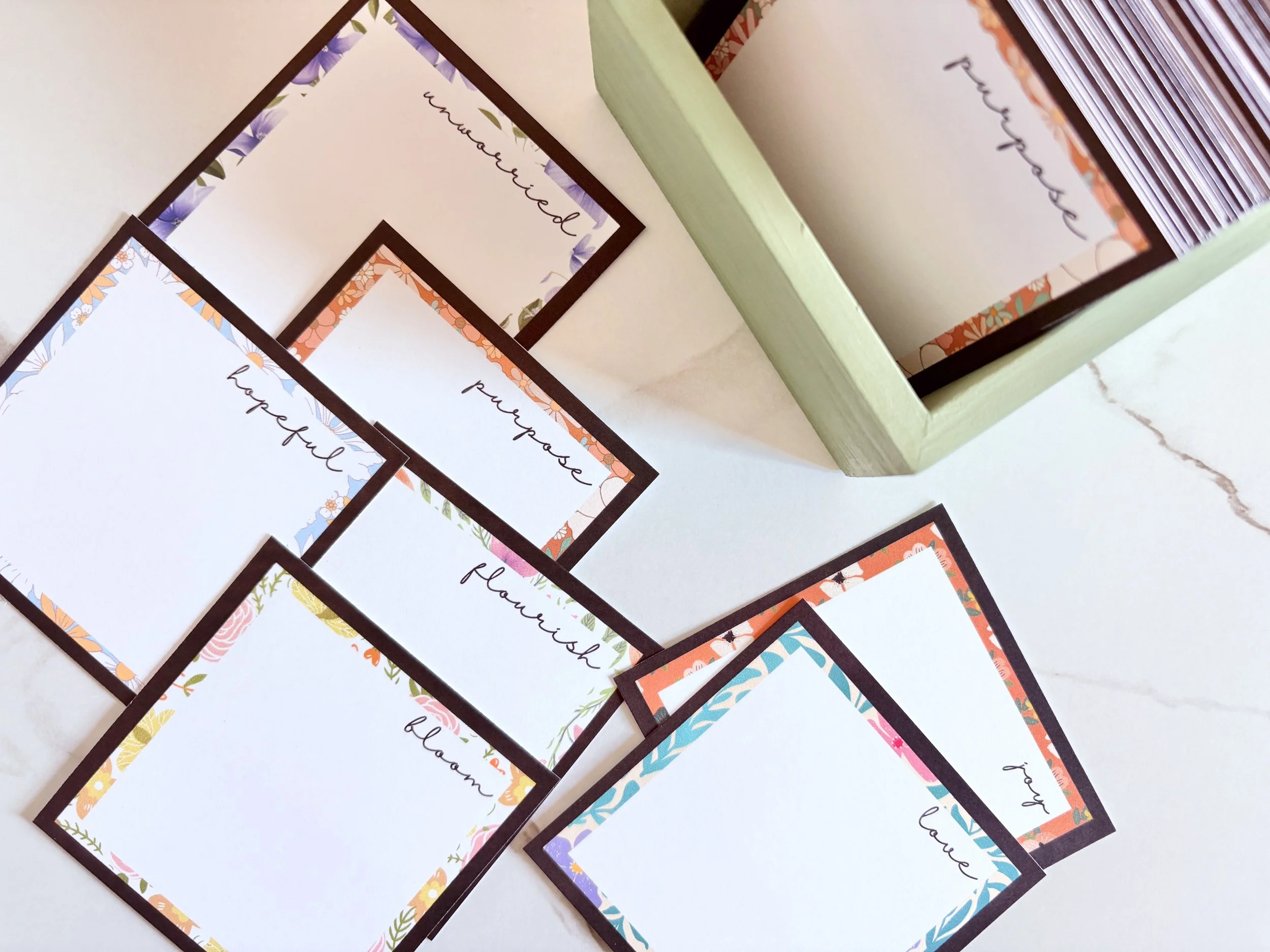 vibrant florals. note cards in a wood box. 3.5x3.5.