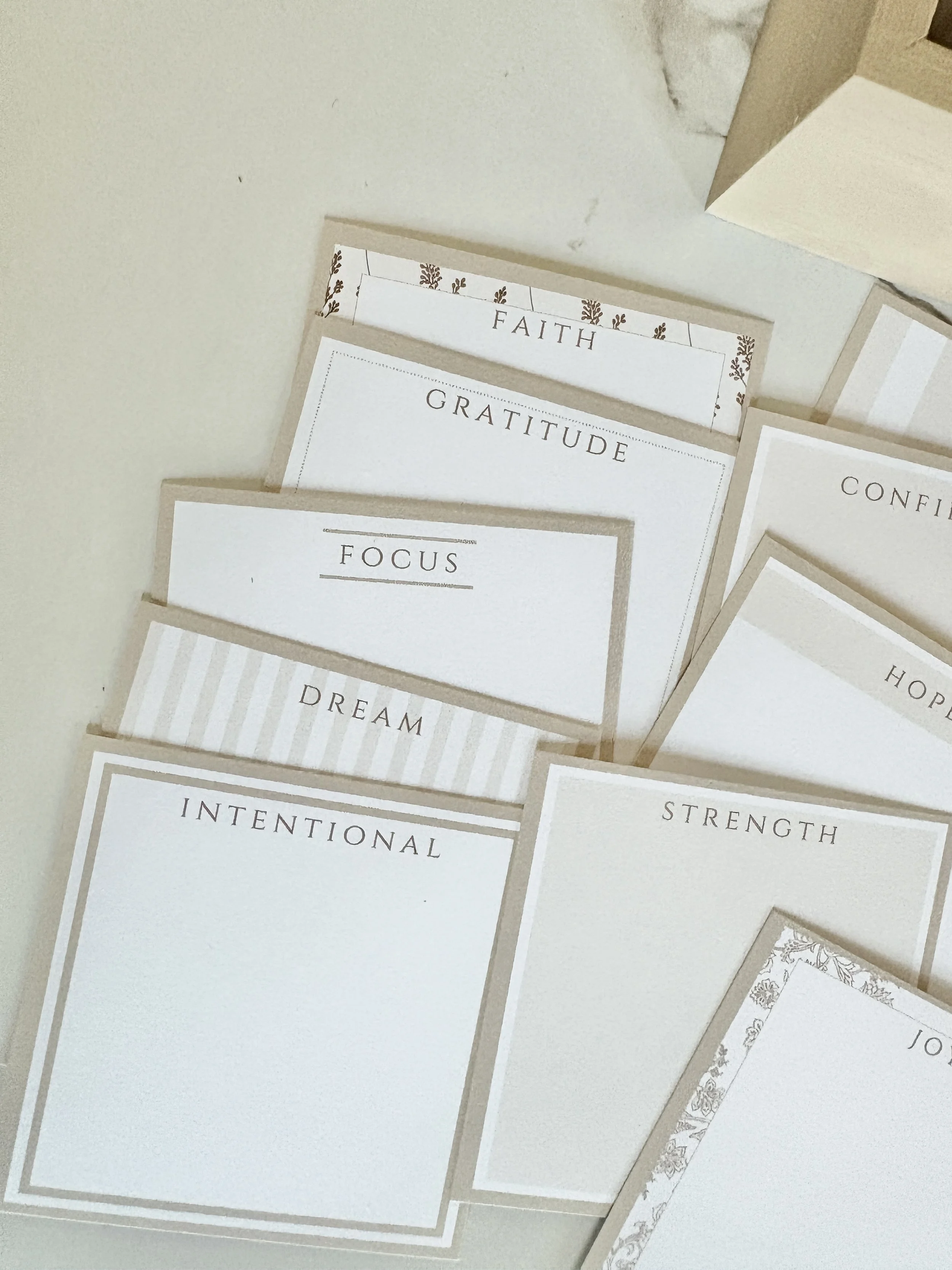 Choose Gratitude-Calm Neutrals: 48 gratitude cards in a wood tray