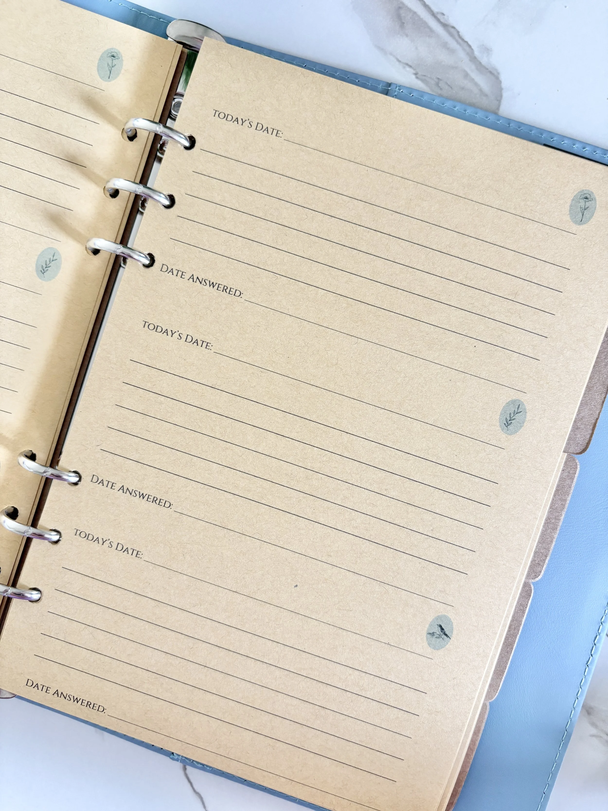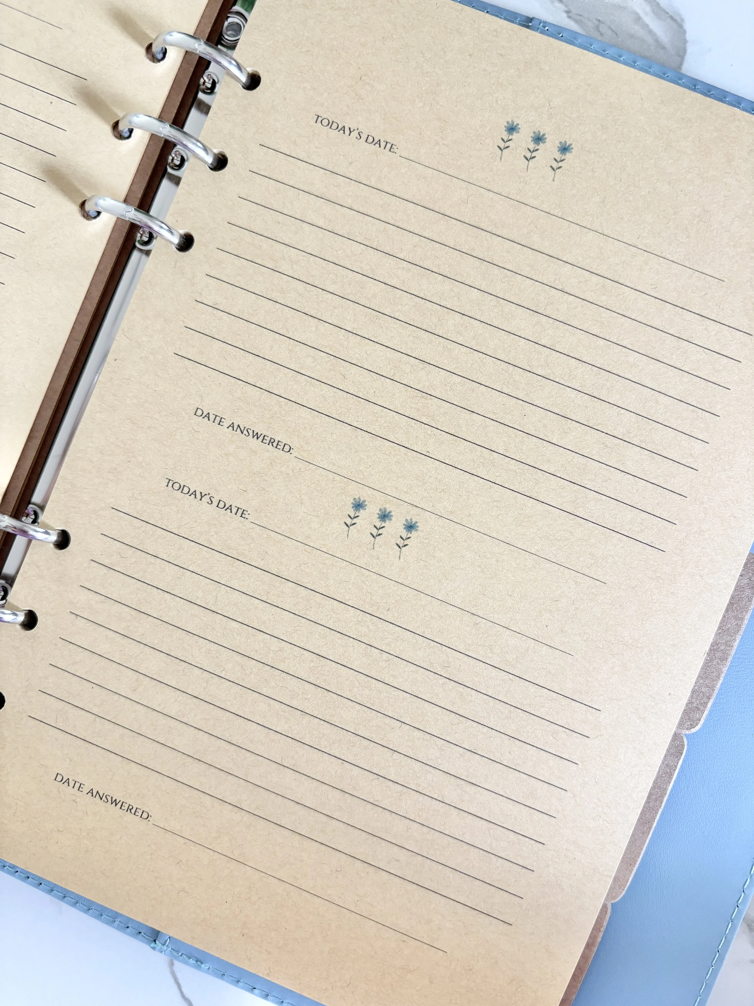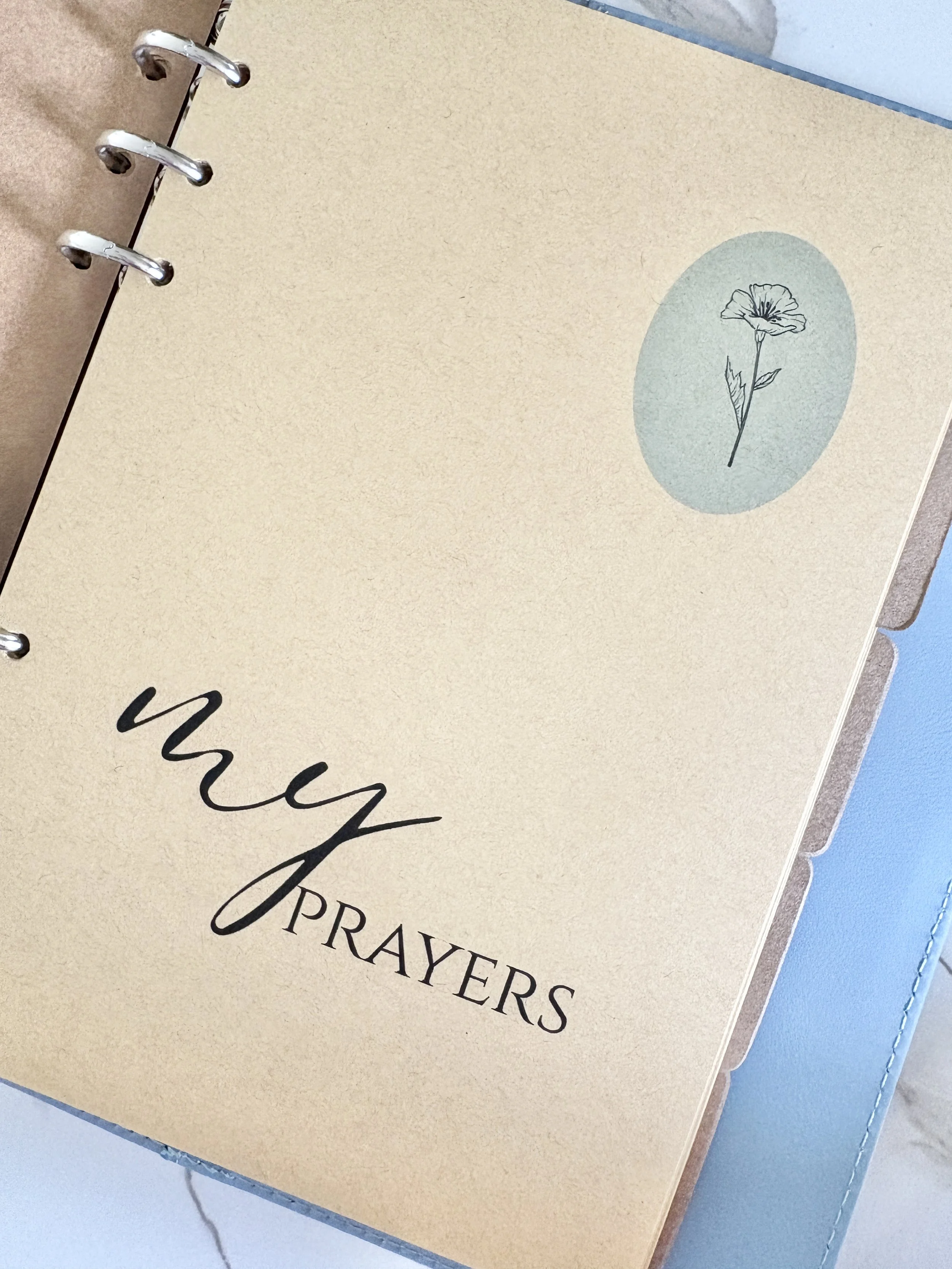 Product Description: An essential prayer box with space to place your favorite pen inside the box. Preprinted dividers to sort your prayers and blank dividers to create your own.